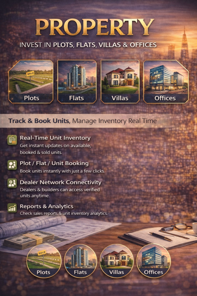 Book plots, flats, villas, offices, and shops instantly with real-time confirmation.